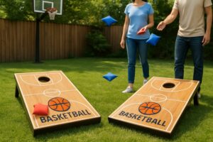 - Basketball-themed cornhole boards have injected fresh excitement into backyard sports.